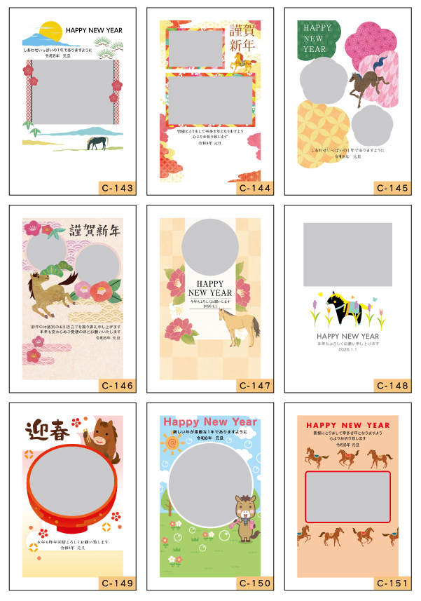 ※C-143からC-151は、フォトフレームデザインのため、枠内のグレー部分に写真をあてはめます。
